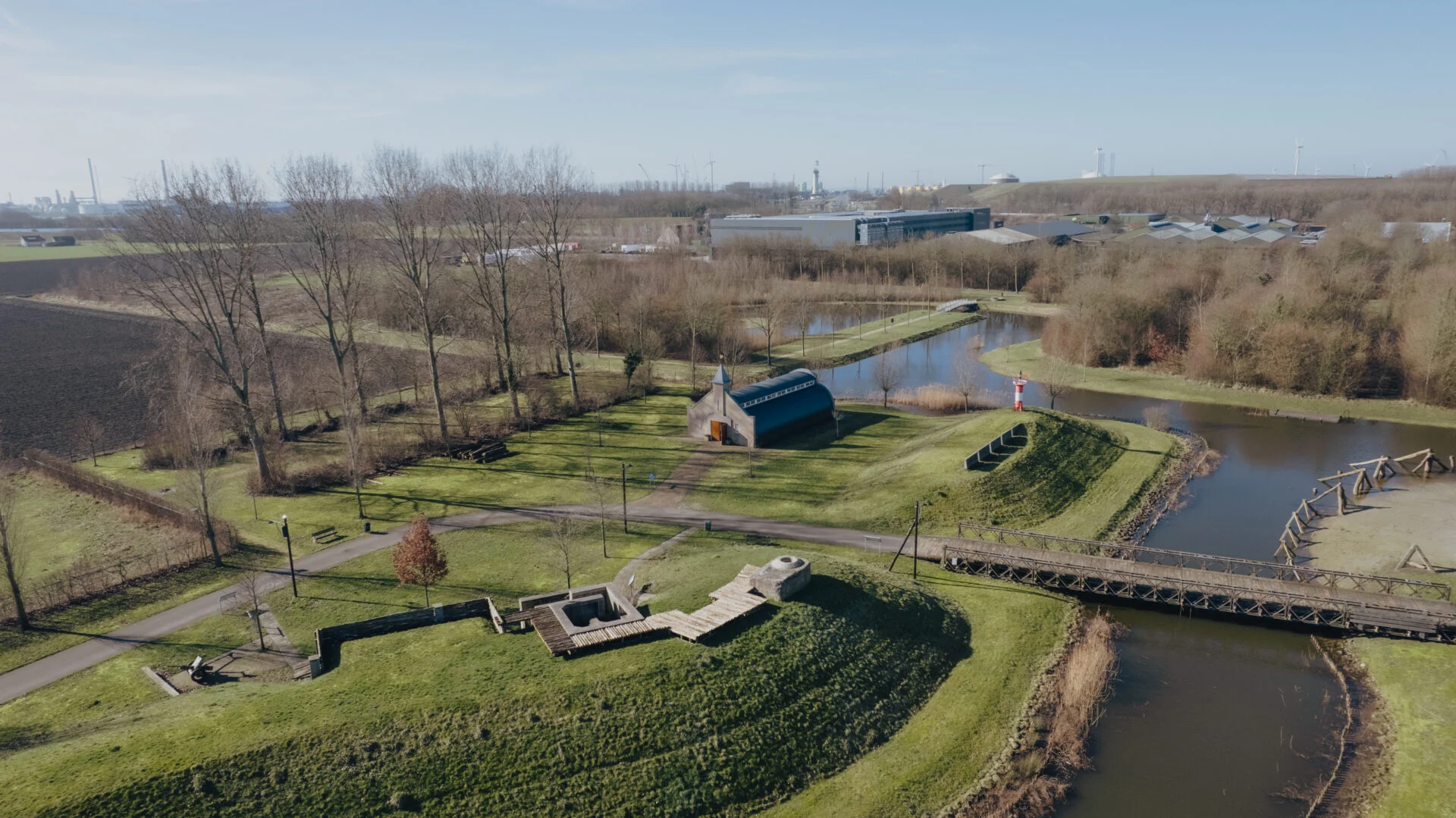 In het Bevrijdingspark loop je tussen loopgraven, bunkers en militaire objecten en krijg je een eerste indruk van de omstandigheden waarin werd gevochten. Je loopt door smalle gangen en voelt hoe krap en kwetsbaar die plekken moeten hebben aangevoeld. Even verderop staat de noodkerk, een tastbare herinnering aan een tijd waarin improviseren noodzaak was.